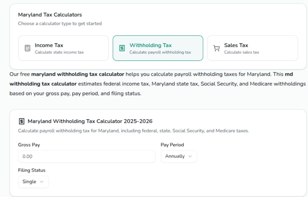 Maryland Withholding Tax Calculator – Accurate & Updated Payroll Estimates (2025)